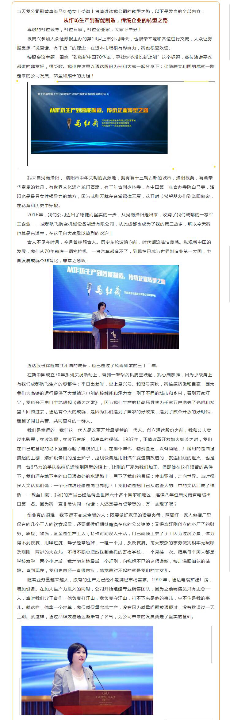 作为今年三项大奖的获得者,通达股份于2011年3月在深交所成功上市,成为洛阳市首家在A股上市的民营企业。此次获奖意味着资本市场对通达股份市场表现、发展方向和品牌战略的高度认可与肯定。