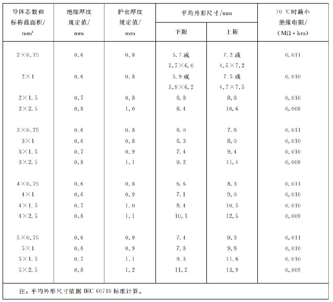 表 2 RVV型300/300V铜芯聚氯乙烯绝缘聚氯乙烯护套软电缆