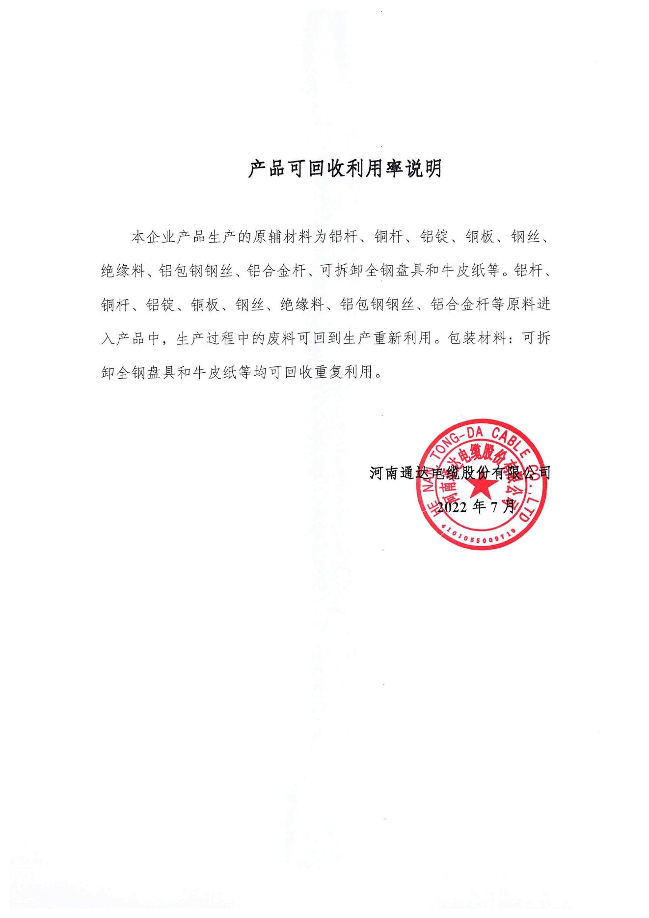 产品回收利用率说明