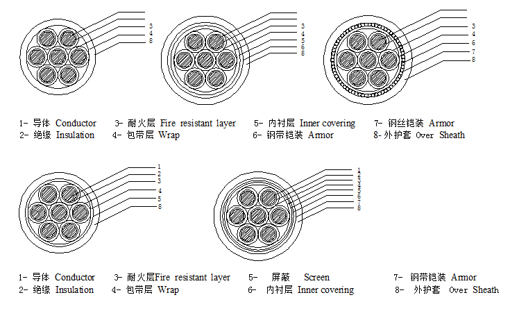 - 交联聚乙烯绝缘阻燃耐火控制电缆产品结构示意图