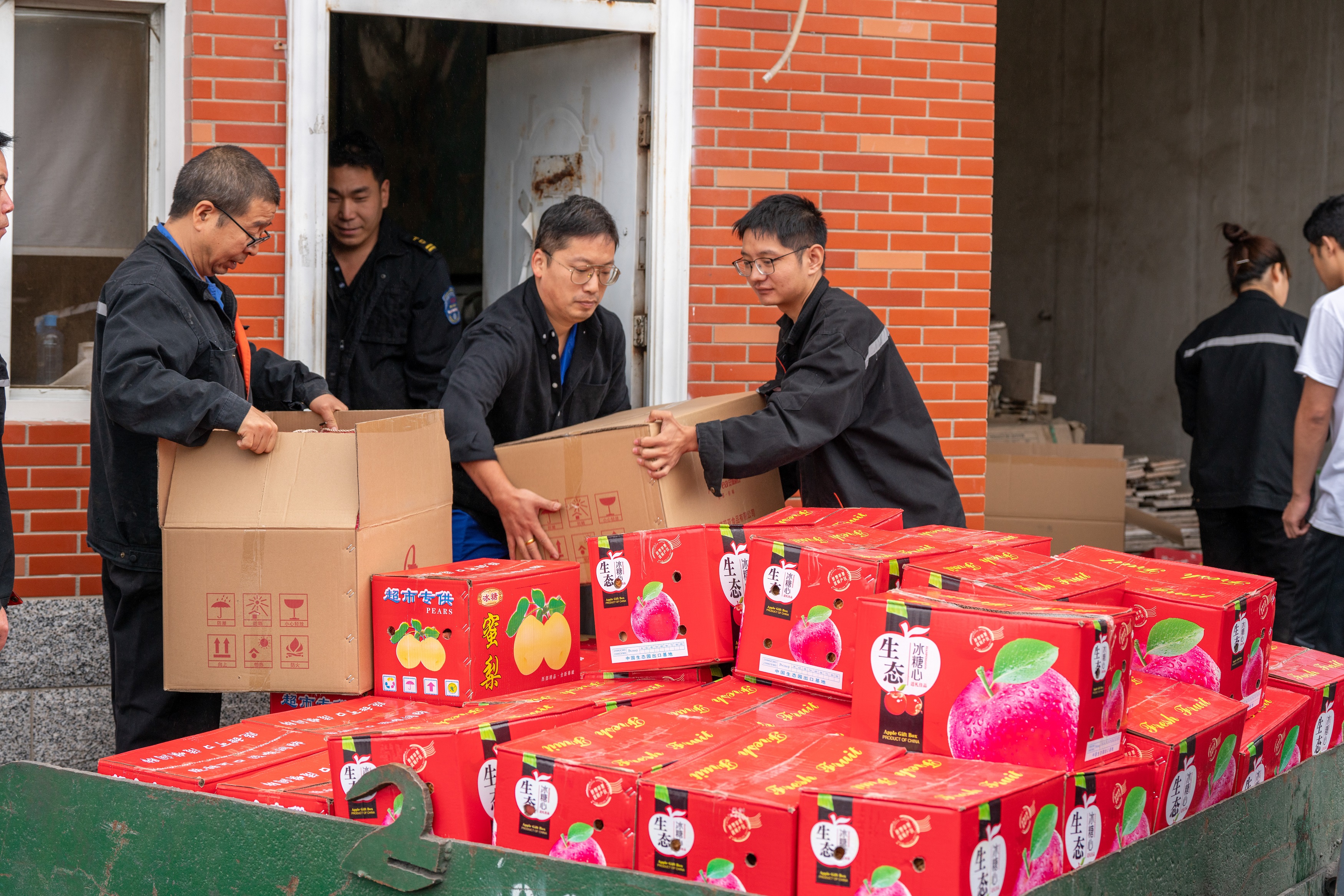 人头攒动、笑语欢声,福利发放现场气氛热烈,喜悦之情溢于言表,大家相互分工配合、相互协作帮助,迅速完成了福利领取工作。