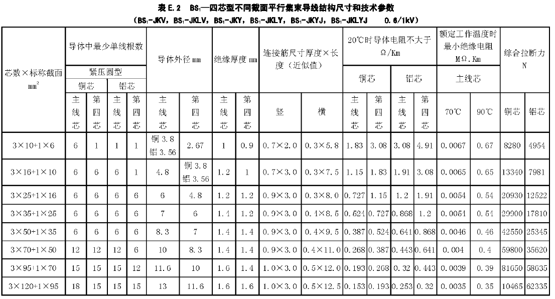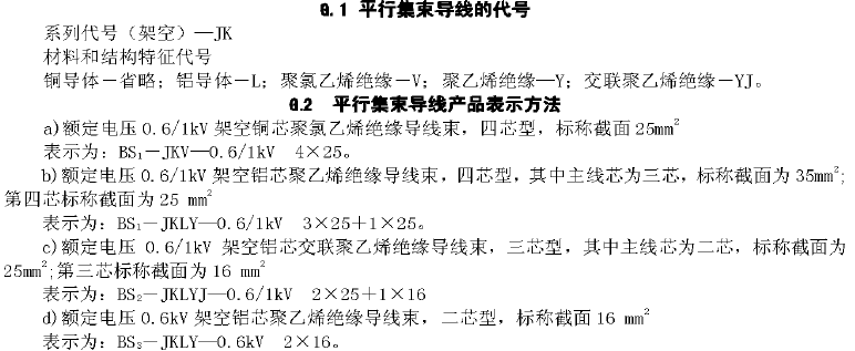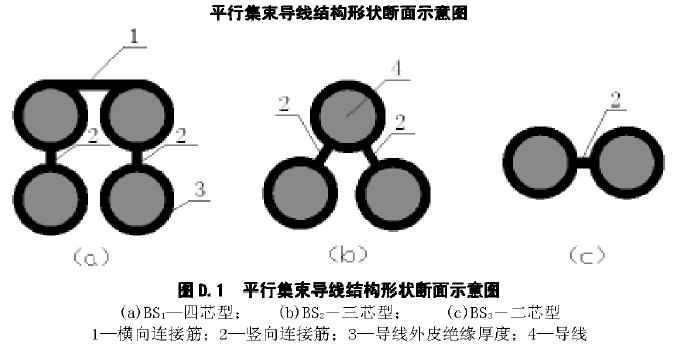 定义平行集束导线指用于低压低压线路的两根、三根或四根绝缘导线平行连接在一起的导线束。平行集束电缆一般采用四根导线呈正方形对称布置,导线之间由绝缘层及筋带相互平行的连接在一起(其它导体结构还有两等芯、三等芯、四等芯。)