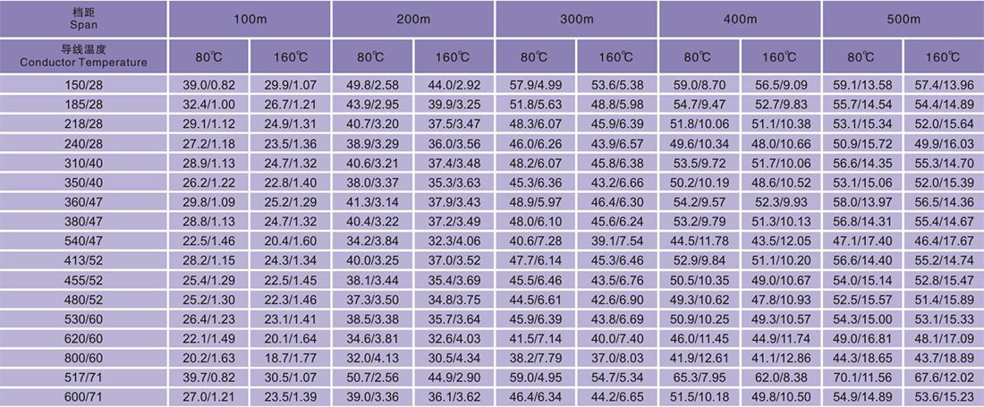 - 导线的线膨胀系数为钢的1/10,在最低温到最高温的运行温度范围内弛度小