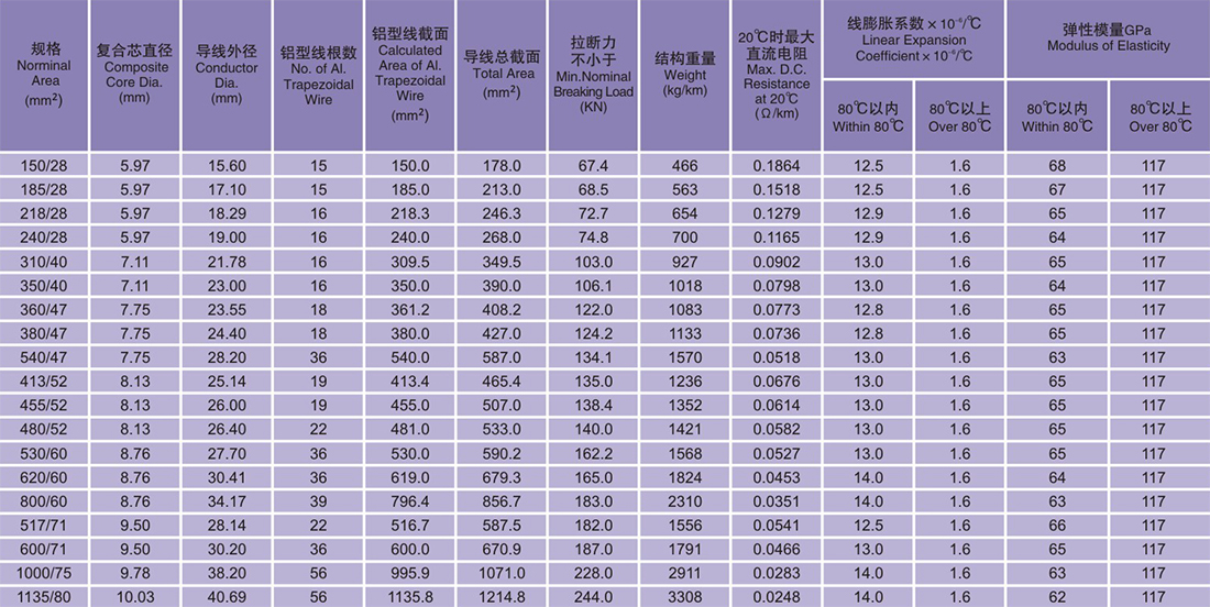 - 导线的直流电阻和交流电阻小,线路运行时线损小,导电率为63% IACS,比普通导线提高2个百分点