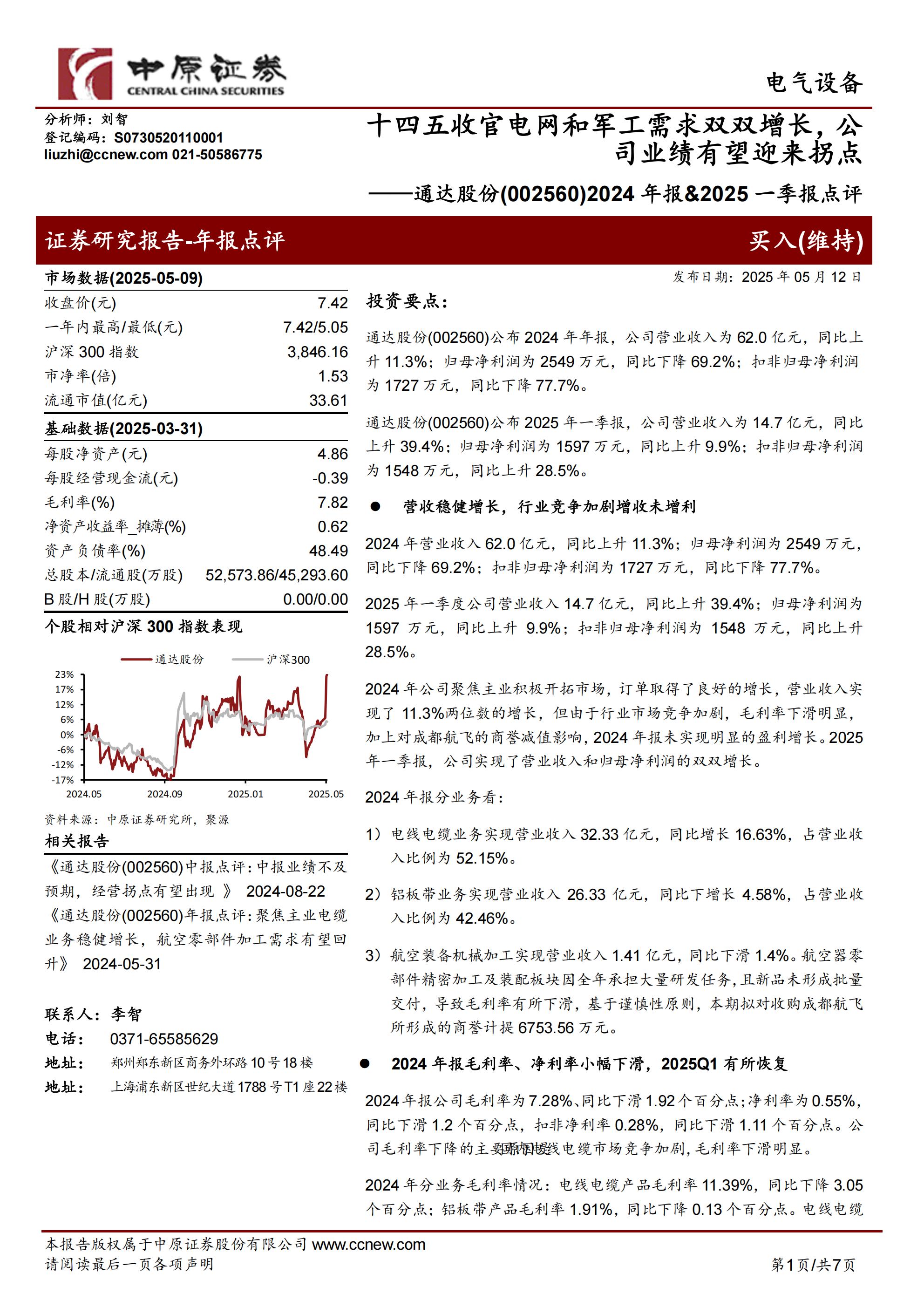 通达股份:十四五收官电网和军工需求双双增长,公司业绩有望迎来拐点