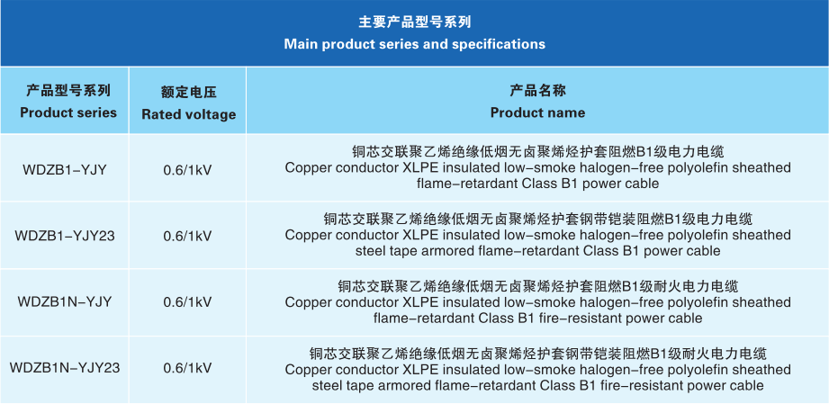 适用于地铁、轻轨、机场、高层建筑、商场、医院、学校等人员密集的公共场所的供电系统,用于额定电压0.6/1kV及以下电力输配电线路的供电。