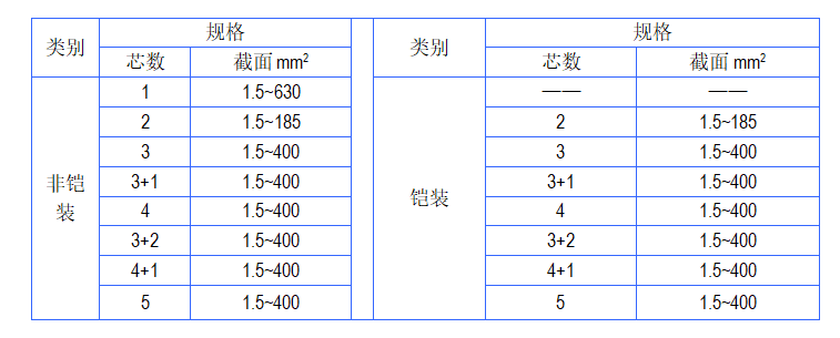 额定电压0.6/1kV长寿命阻燃辐照交联钢带铠装无卤低烟阻燃(耐火)电缆(导体工作温度90℃) |