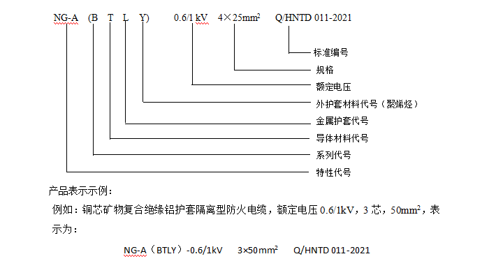 产品用型号、规格(额定电压、芯数、标称截面)及标准编号表示。