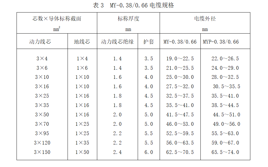 4.1.1 矿用移动橡套软电缆(MY、MYP)具有以下性能: