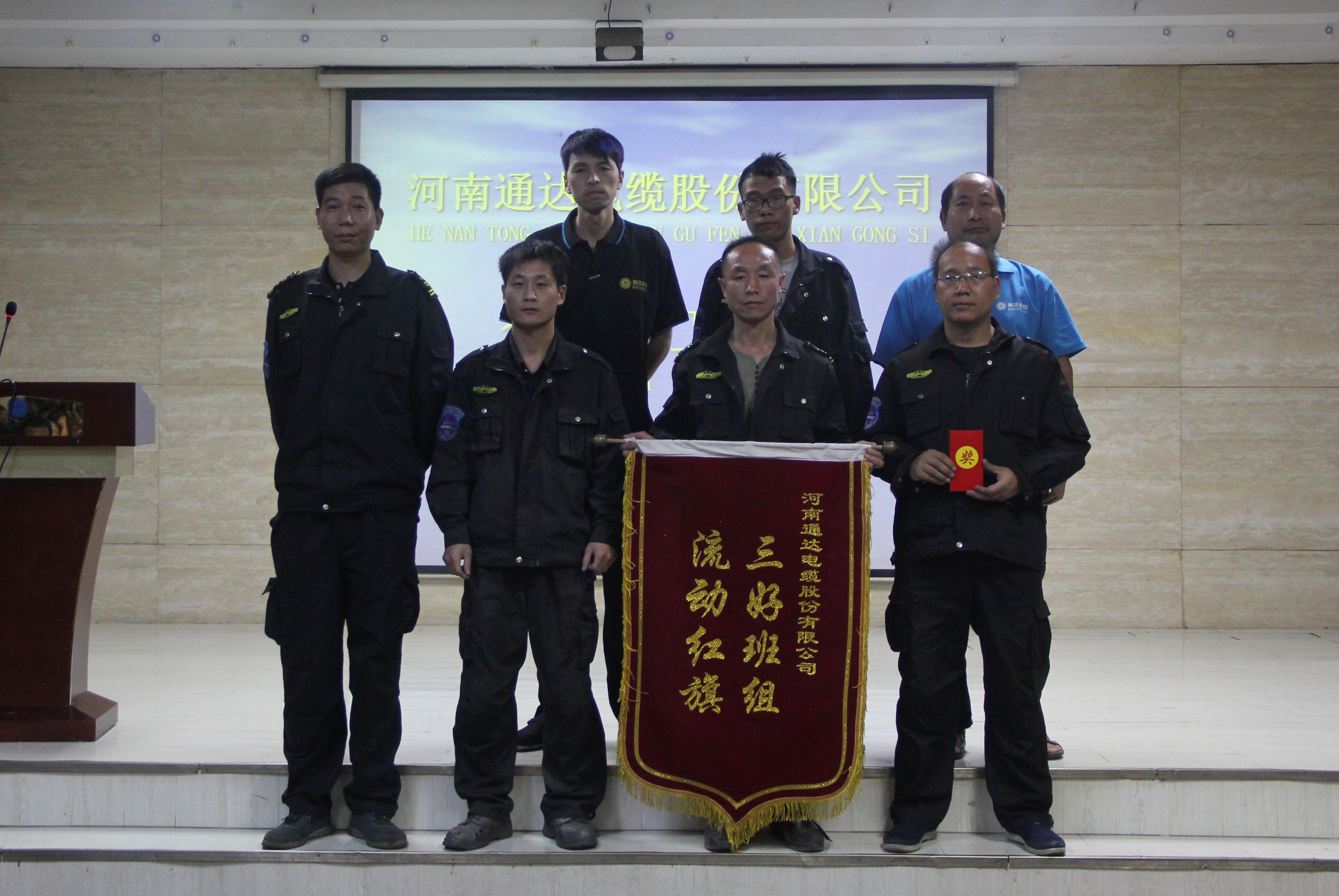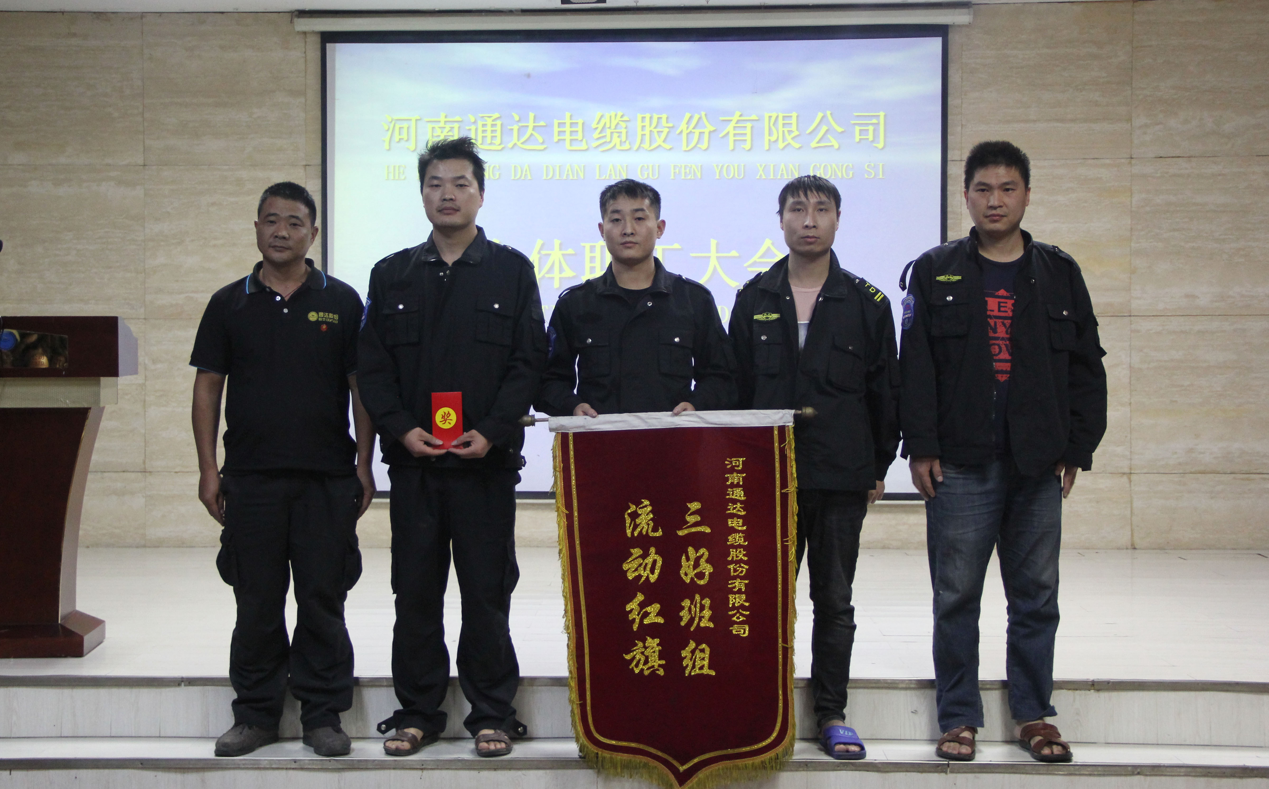 绞合车间:8号绞合机员工在本月工作中在质量、生产、7S方面表现突出被公司评为优秀三好班组:共6人(曲松豪 王景国 胡占伟 苏延平 李亚杰 齐鹏飞)。